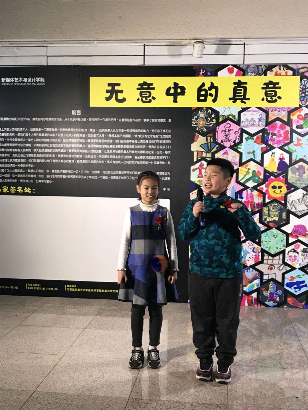 1月23日,“无意中的真意”儿童绘画作品展在逸夫楼新媒体启航艺术空间开幕,本次展览由成人小说 策划主办,共汇聚了来自北航附小及北航幼儿园23位小朋友的120余幅作品,向公众呈现了孩子们稚嫩视野中充满童真而美好的画面。