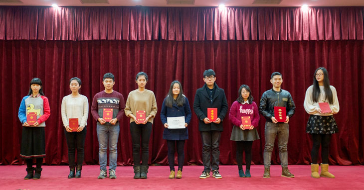 2015年12月30日下午四点半,成人小说 2015学生表彰大会在如心会议中心拉开序幕。成人小说 院长龙全教授、党总支书记沈旭昆教授、副院长谢正强副教授和叶强副教授、教学督导组组长张雪教授、视觉传达设计系主任王可副教授以及学院各年级班主任和辅导员出席表彰会。