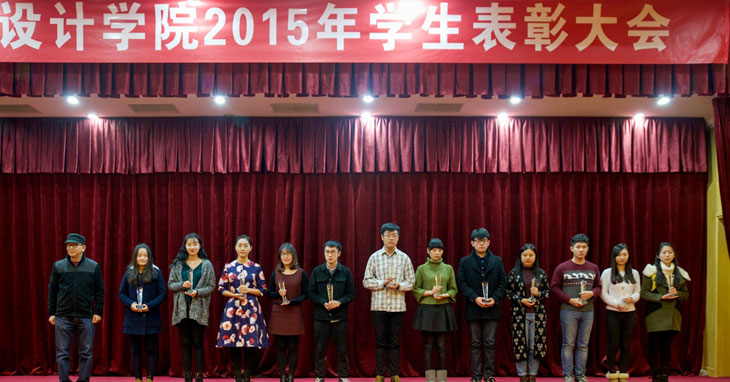 大会伊始,两位主持人带领大家回顾了学院过往的这一年。2015年,学院共有100余名学生荣获校级以上各类奖励和荣誉称号。在集体建设方面共获得18个奖项,其中122613班获得“北航先进班集体一等奖”、“北京市先进班集体”,SY14261班获得“研究生优秀班集体一等奖”等荣誉。在校外重要专业展赛中,学生作品获得91项奖励,其中获得包括第十三届中国大学生广告艺术节学院奖佳作奖、中国首届插图艺术展提名奖、全国大学生艺术展演二等奖等60多个省部级以上奖励。校内专业展赛中,共有375件作品参展获奖。学院通过努力荣获共青团系统文艺工作最高奖“艺馨杯”,“研究生科技创新实践标兵学院”和“第十一届研究生学术论坛优秀组织奖”、“最佳文化交流分论坛”等荣誉。