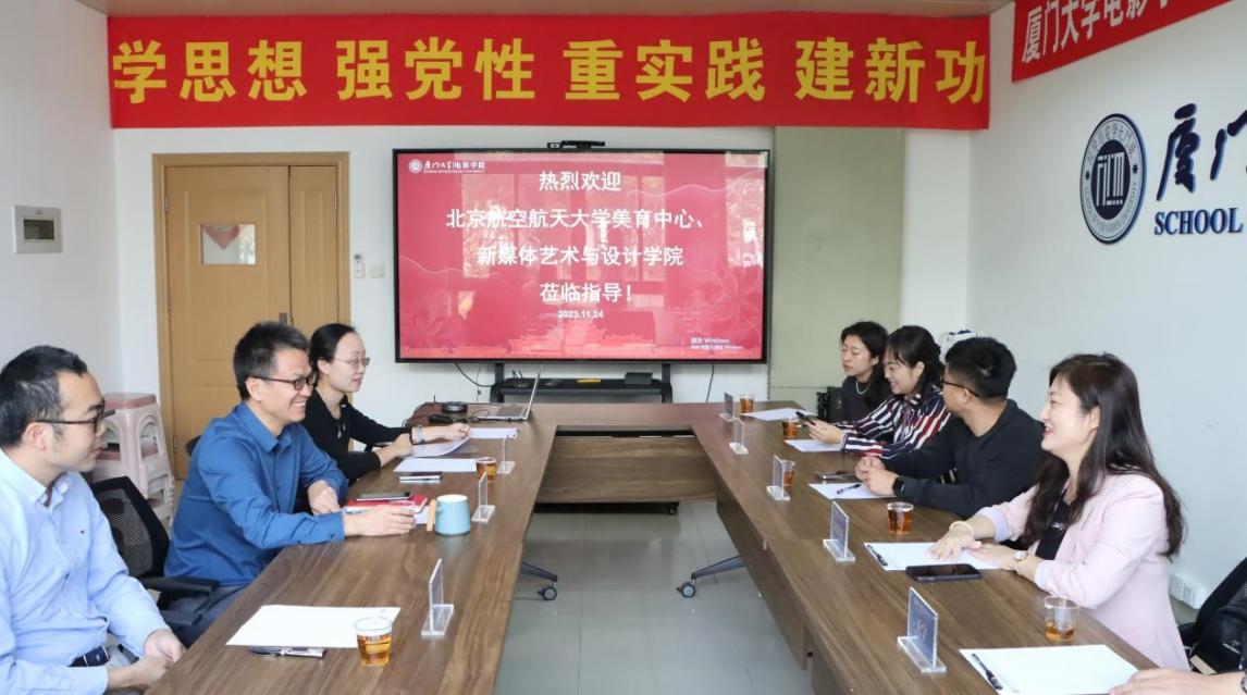 为把握科艺融合的发展大趋势,创新人才培养模式,2023年11月24日,成人小说 和美育中心共7名教师受邀到厦门大学电影学院开展座谈交流,会议在厦门大学海韵园行政楼C416举办。