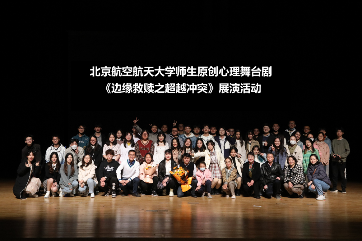 场景四:“我看得很认真,也有很多思考,我相信最起码今晚的观众能更加重视自己心理的各种问题,开始学会与自己和解。”一位学生在观看北航师生自编自导自演的心理剧《边缘救赎之超越冲突》后评论道。