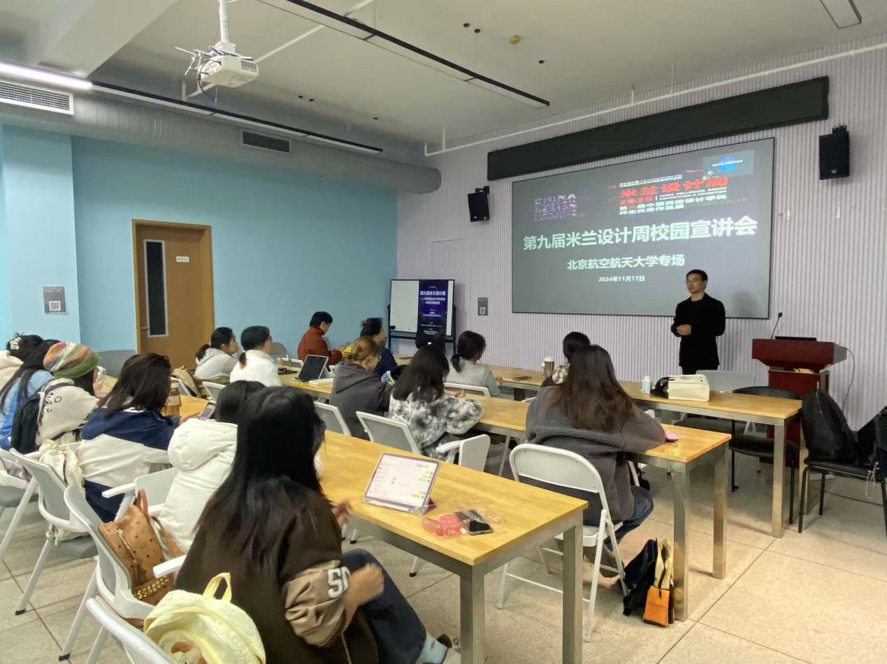 11月17日,第九届米兰设计周中国高校设计学科师生优秀作品展宣讲活动在北航成人小说 举行,本次活动邀请到大赛运营负责人周光明主讲。