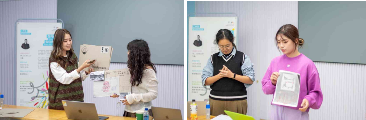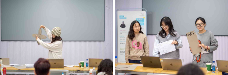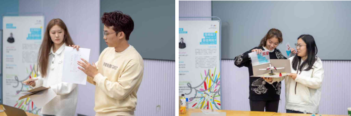 此次工作坊在轻松愉快的氛围中圆满结束,不仅激发了同学们的创造力与团队合作精神,还鼓励他们在4小时内暂时远离搜索引擎和专业软件,通过手绘草图和综合材料对设计方案进行直观推演和展示。