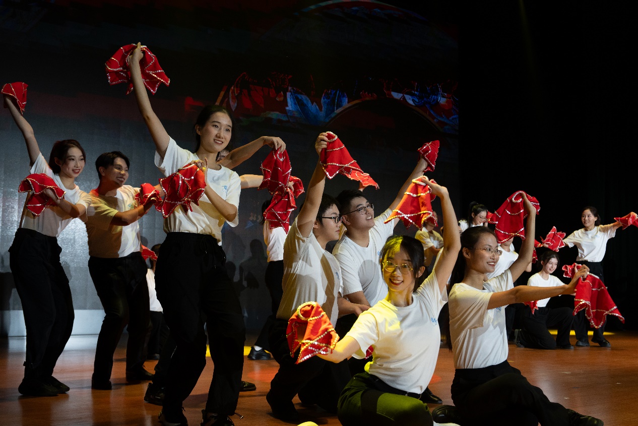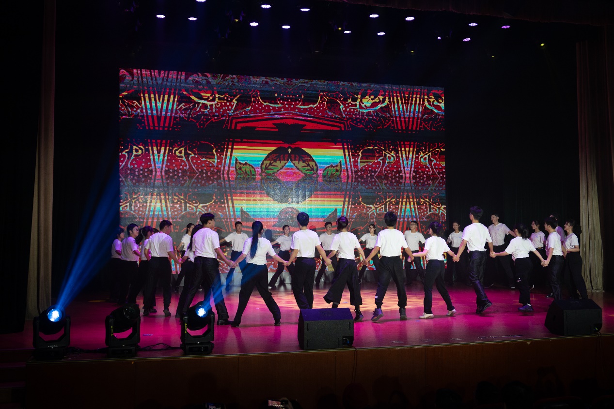 演出最后,全体演员在热烈的掌声中谢幕,成人小说 院长兼美育中心主任沈旭昆教授讲话,指出了学校对于美育工作的重视及科艺融合的重要性,并对指导老师和参演同学表达了由衷的感谢。