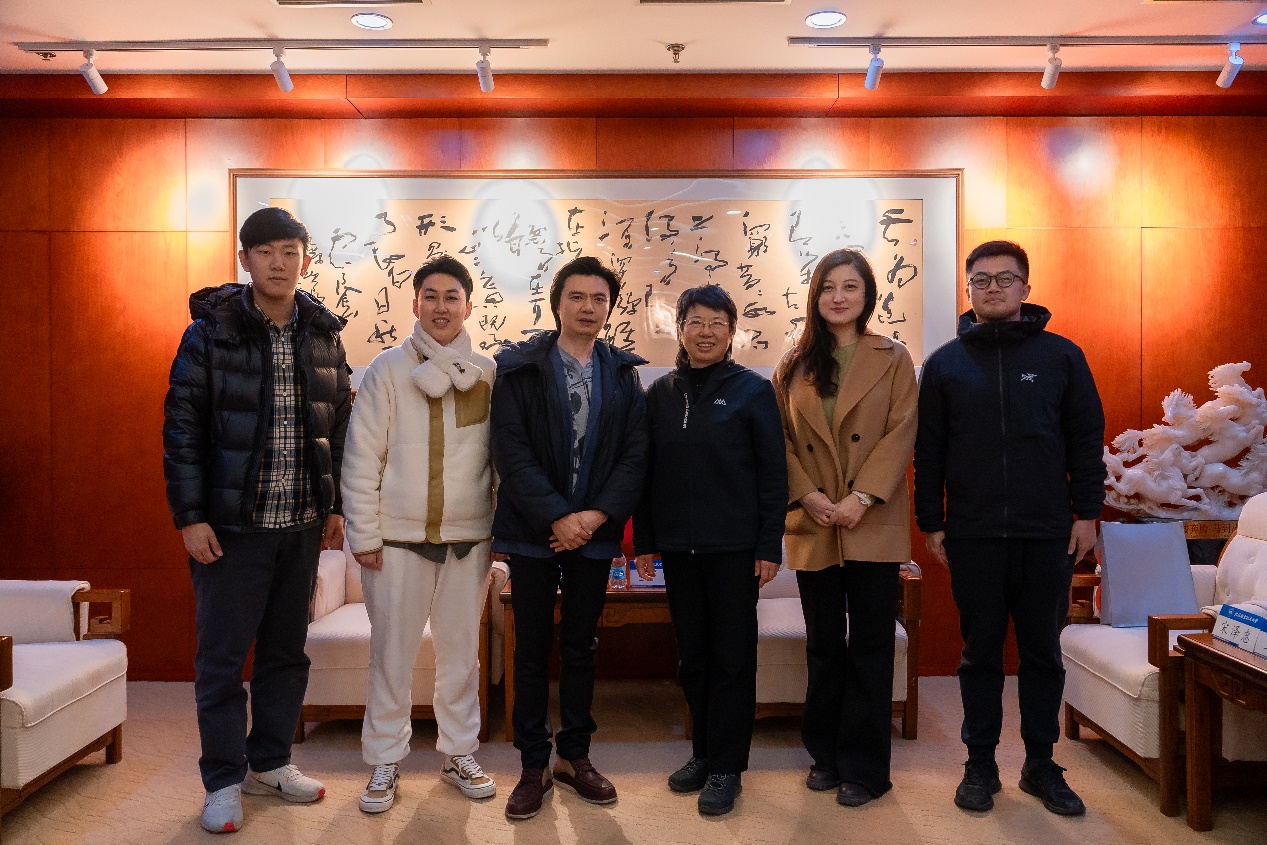 讲座开始前,成人小说 党委书记王群、美育中心副主任宋泽惠与陈超亲切交流并赠送北航纪念品。