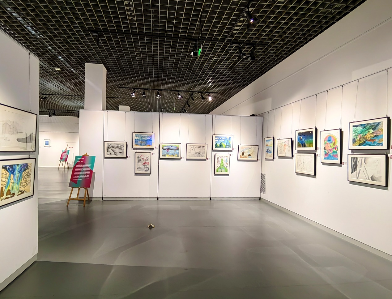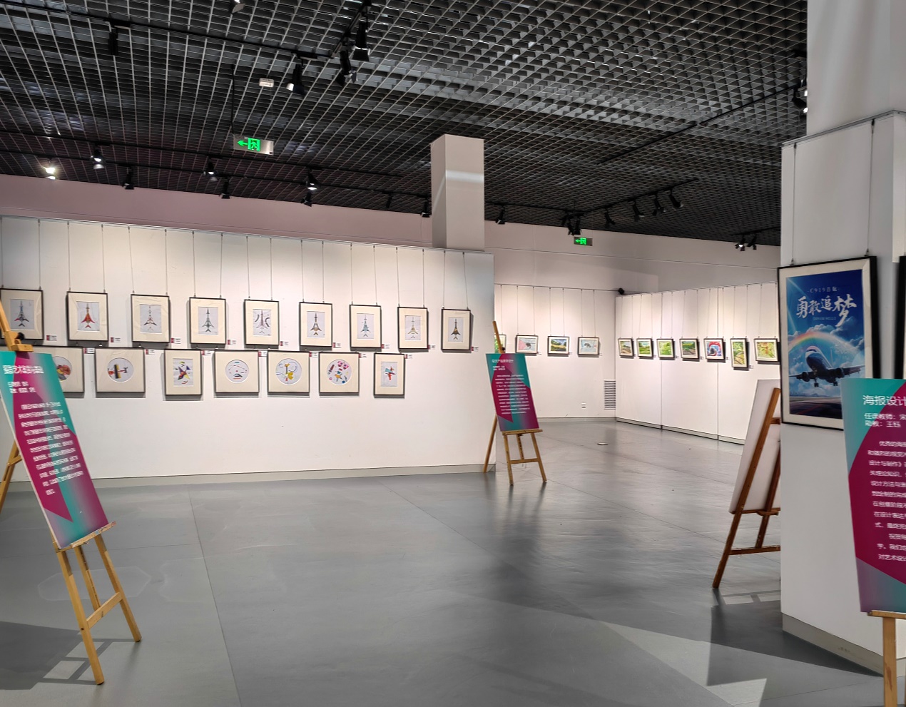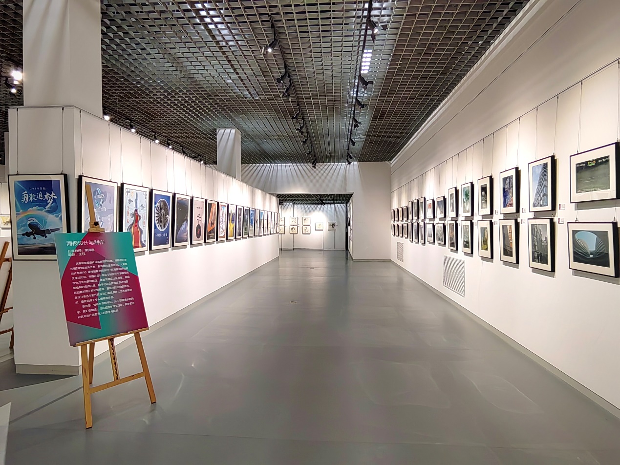 本次联展以“星梦高远,美润启航”为主题,包括《海报设计与制作》《摄影艺术鉴赏与基础》《透视与空间》《电影鉴赏与分析》《中国美术史》《转描动画技法》《西方美术与观念》《空天产品美学设计》《水彩画技法》等课程,包含绘画、海报、影像等类型作品,集中展示了二百余名学生的创作作品。