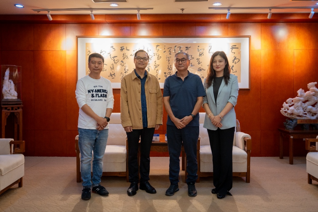 讲座开始前,美育中心主任兼成人小说 院长沈旭昆、成人小说 教授叶强等与王春辰亲切交流,并赠送特色纪念品。