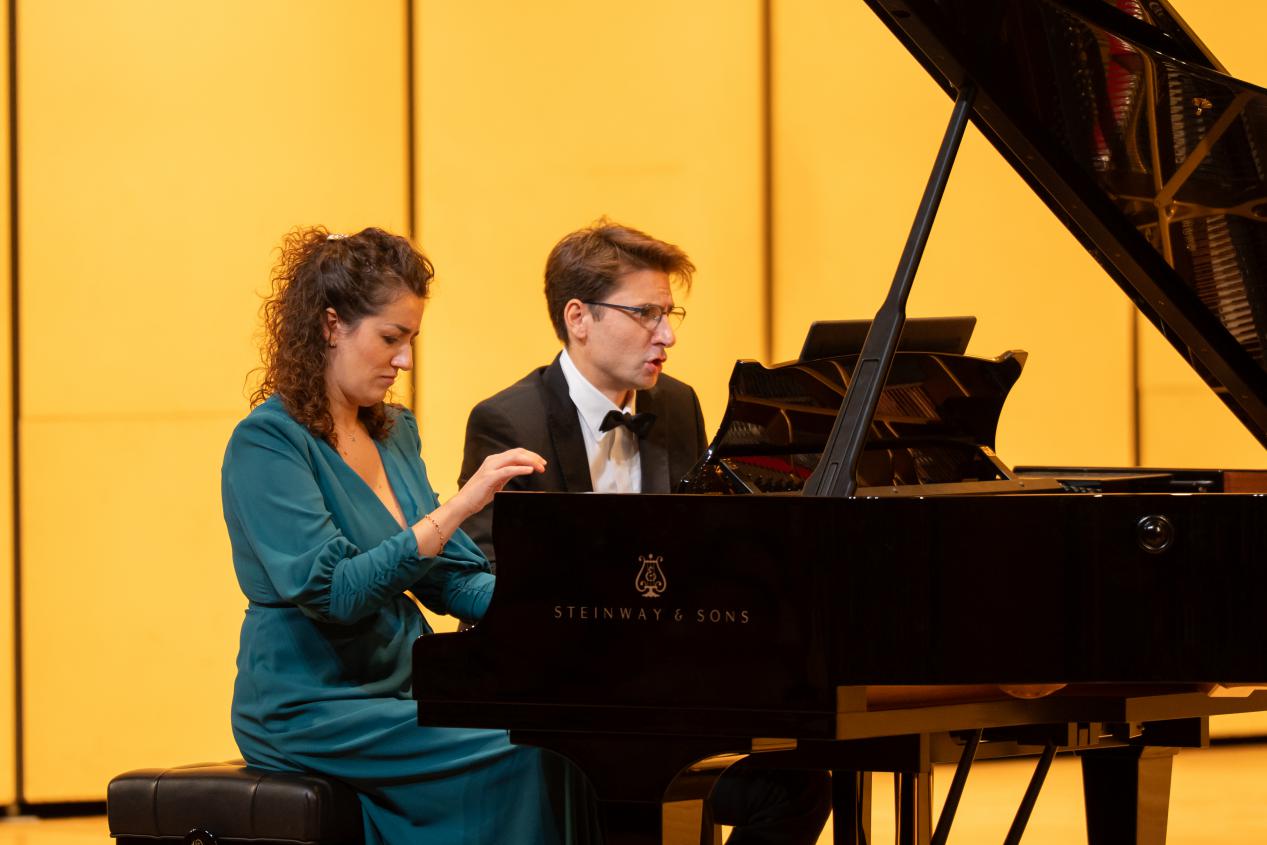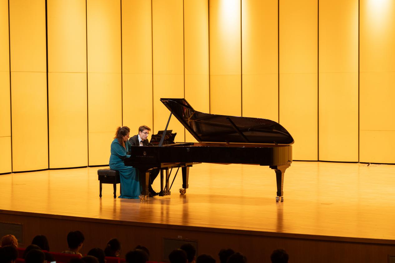 北航美育中心特邀美育演出《意大利非凡丝贝钢琴四手联弹音乐会》在晨兴音乐厅上演10月21日晚,北航美育中心特邀美育演出《意大利非凡丝贝钢琴四手联弹音乐会》在学院路校区晨兴音乐厅举办。两位钢琴家埃莱奥诺拉·斯皮纳(Eleonora Spina)与米凯莱·贝尼涅蒂(Michele Benignetti)为北航师生带来了一场难忘的音乐盛宴。音乐会在C.弗兰克的《前奏曲、赋格与变奏曲》作品18中拉开帷幕。这首由管风琴原作改编的四手联弹版本,在保...[详细]