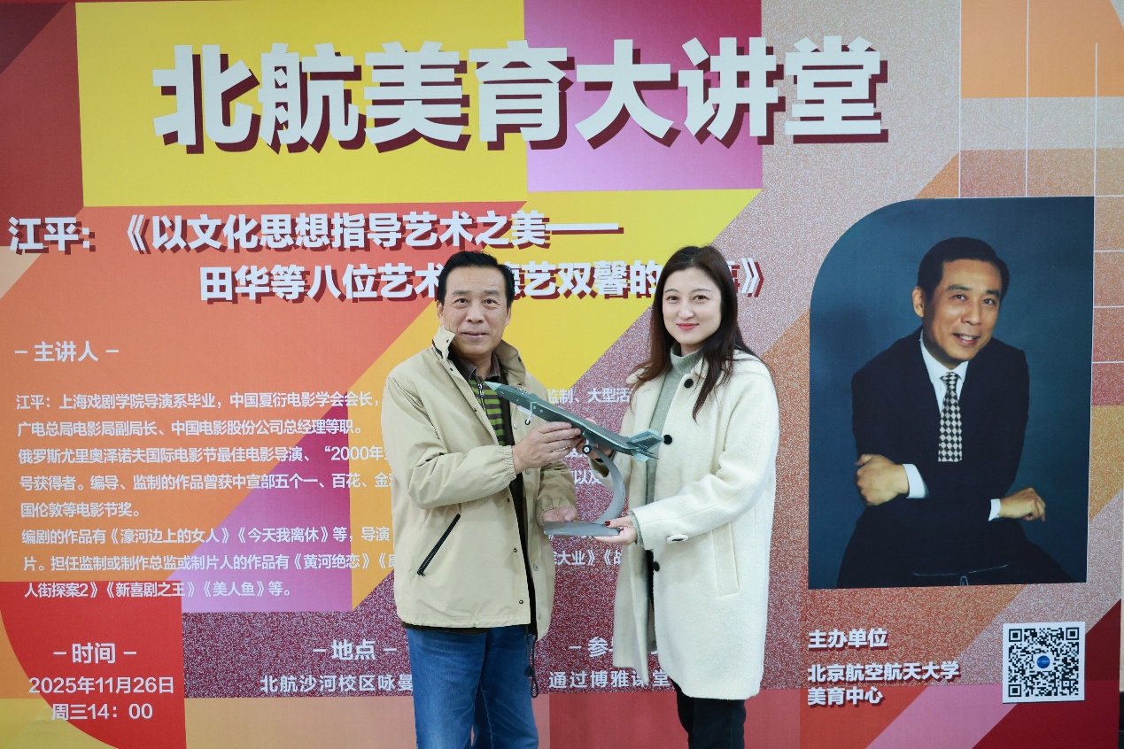 11月26日下午,北航美育中心特邀中国夏衍电影学会会长,国家一级导演,原国家广电总局电影局副局长、中国电影股份公司总经理江平做客美育大讲堂,为师生带来“以文化思想指导艺术之美——田华等八位艺术家德艺双馨的故事”美育主题讲座。讲座由北航美育中心副主任宋泽惠主持。讲座首先介绍了电影的起源及其传入中国的历史,随后他结合学校特色,介绍了近年来以航空航天为主题的经典影视作品。江平以多部经典影片为例,通过现场...[详细]