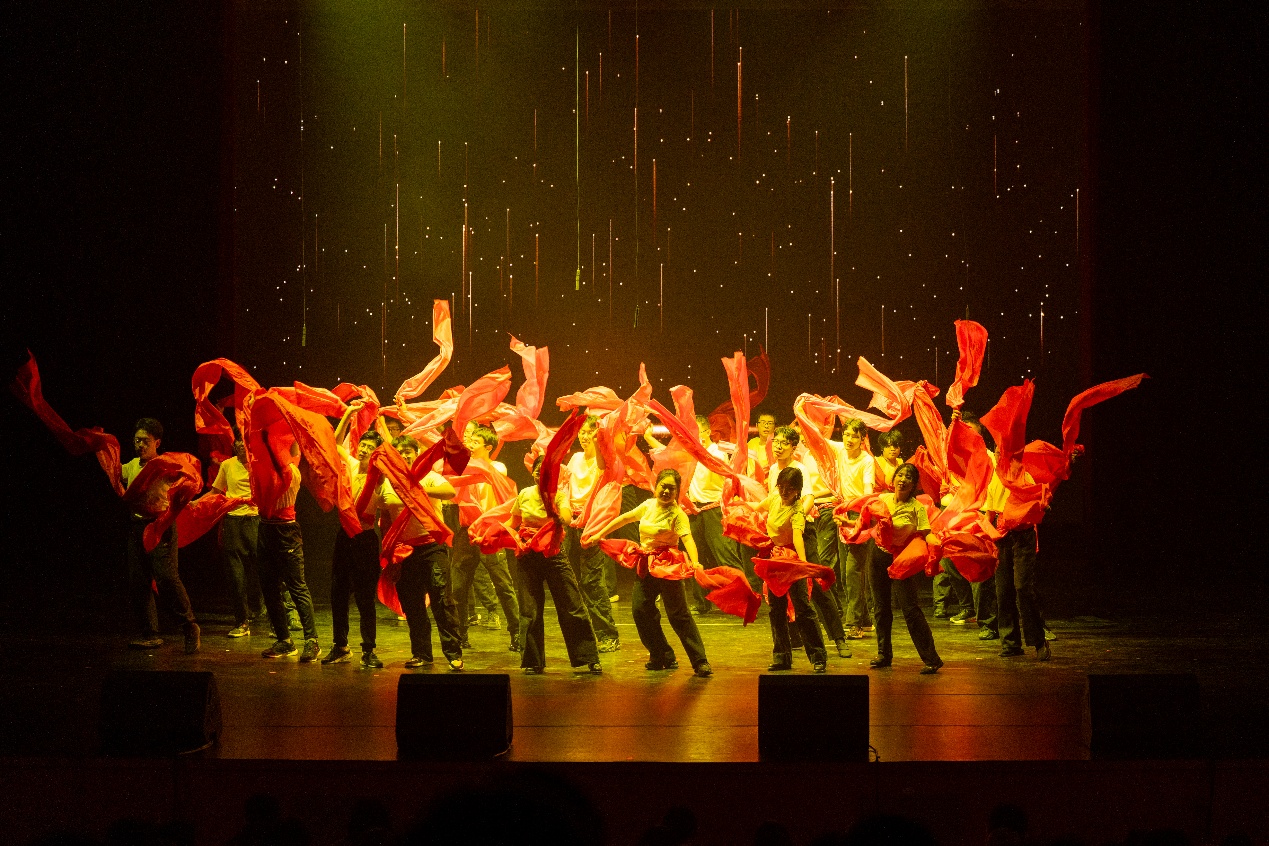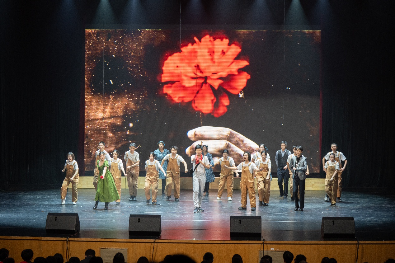 随后,各类精彩节目轮番登场,涵盖舞蹈、声乐、弦乐、戏剧、影视、钢琴演奏等多种艺术形式。赵洋燕老师《音乐剧表演实践与赏析》课程带来的《Seasons of Love》《Wait For Me II》,八十余名学子以饱满的热情、默契的配合演绎经典音乐剧片段,歌声悠扬、情感真挚,展现了音乐剧艺术的独特魅力。