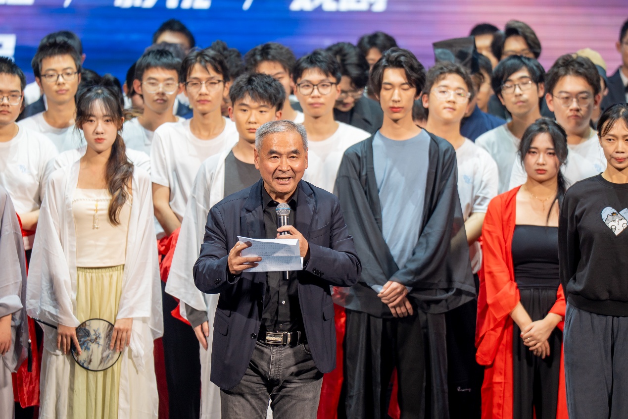 院长沈旭昆发表讲话,强调了学校对美育工作的高度重视和艺科融合的发展理念,对全体指导及参演教师的辛勤付出和参演学生的精彩表现给予高度肯定与衷心感谢。