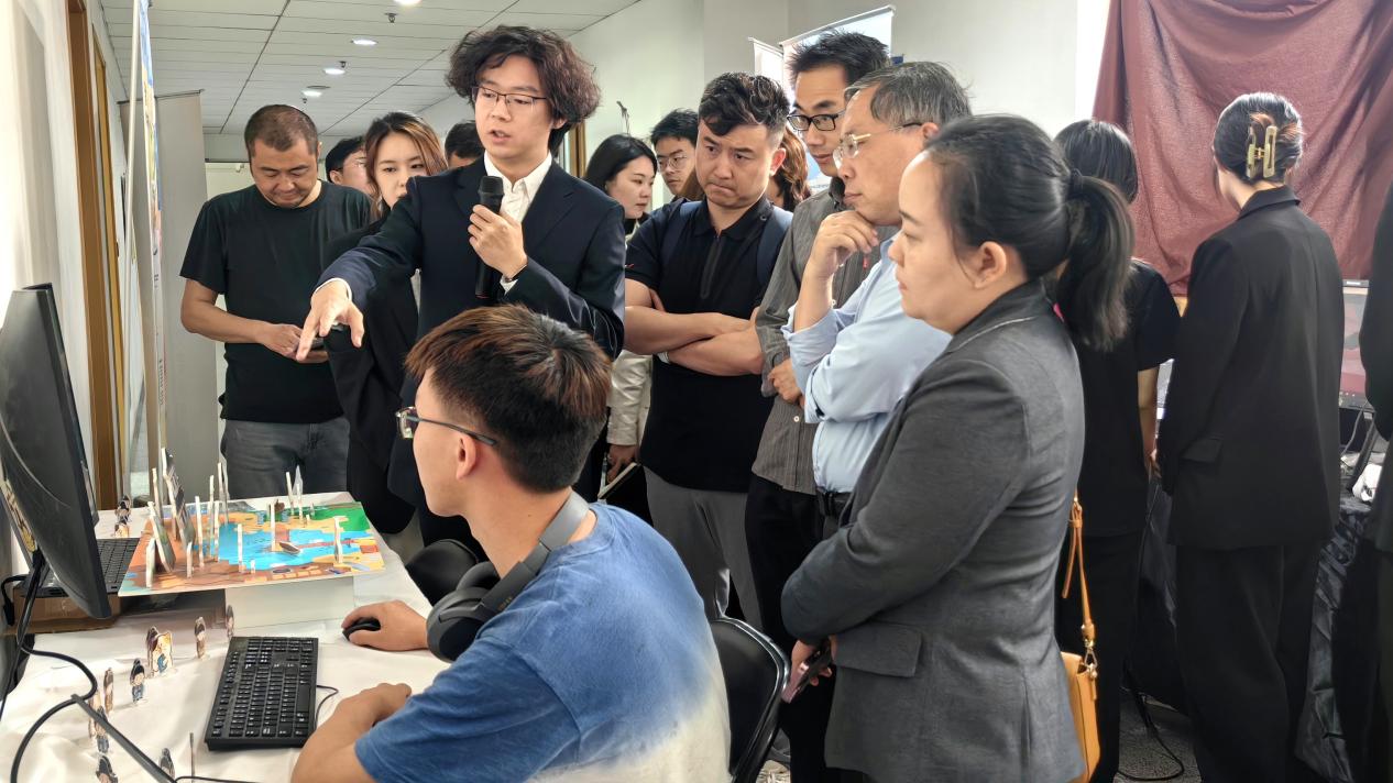 答辩开始前,通过布展展示环节,项目团队向评委专家们介绍了作品的设计理念和展示效果,VR体验、数字模拟、3D打印、建筑沙盘等形式各异、构思精巧的作品激发了老师同学们的兴趣,增强了展览的互动性和丰富性。