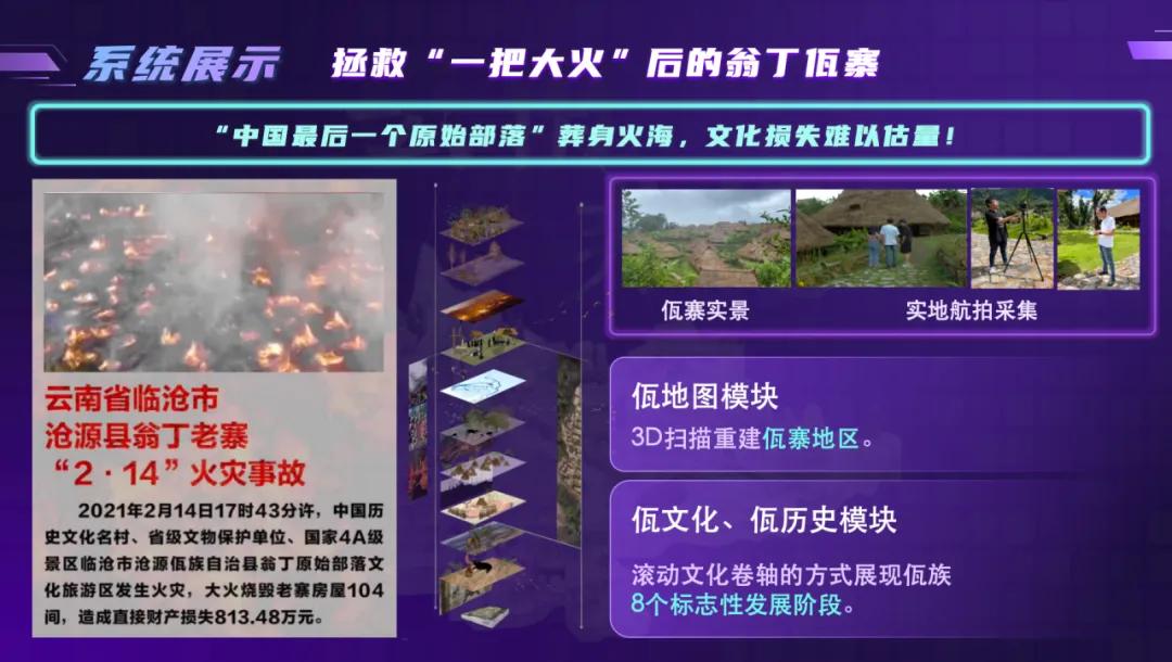 平台包含翁丁佤寨数字化体验系统、云南省线上民居博物馆、非遗舞蹈创意编排与展示系统等多项内容,利用设计思维与实践,重塑了“一把大火”后的翁丁佤寨、守护了“日渐消亡”的非遗民居、接棒传承人“盘活”了活态化非遗。